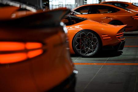 Der langgestreckte, tief geduckte Zweisitzer setzt auf einen V6-Verbrenner aus der Lambda-Motorenfamilie, ...