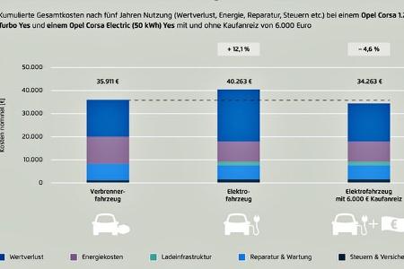 Opel Corsa im Kostenvergleich zwischen Verbrenner-Modell und Elektroauto.