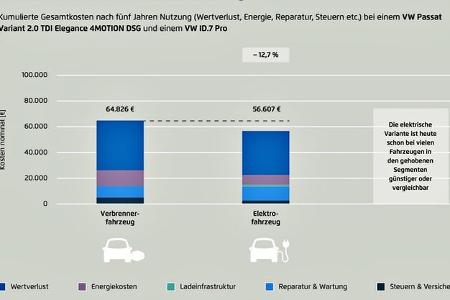 Ein Verbrenner-Passat ist deutlich teurer als der elektrische VW ID.7 – auch im Unterhalt.