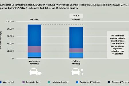 Der Vergleich zwischen Audi Q7 und Q8 fällt zugunsten des Elektro-Modells aus.