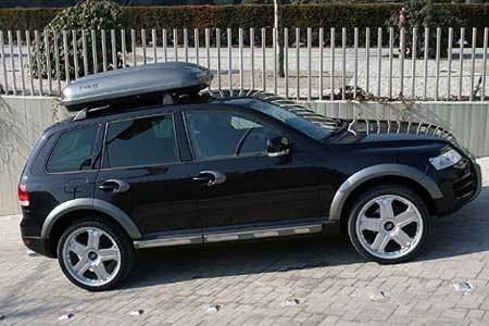Auch für den Touareg erdachte Kamei ein Tuning-Programm. Damals schon ein Teil davon: Die Dachbox, ...