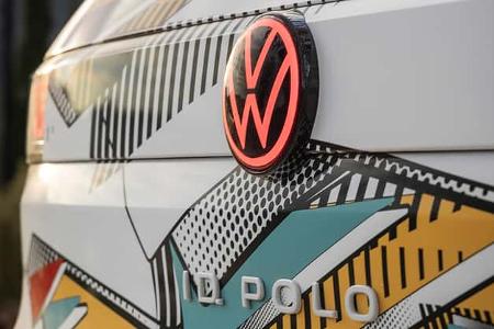 Die Lichtsignatur mit ihren vier abgerundeten Rechtecken bringt frischen Wind ans Polo-Heck. Unter der Tarnfolie lässt sich bereits erahnen: Das Leuchtenband zieht sich über die volle Breite.