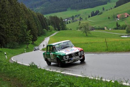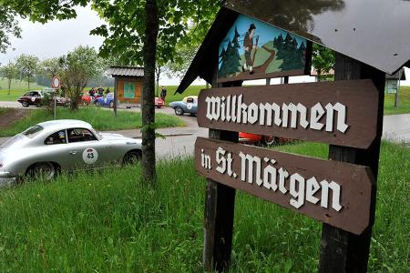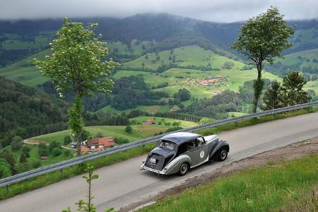 Der Bugatti Typ 35 bei der Einfahrt in eine Wertungsprüfung.