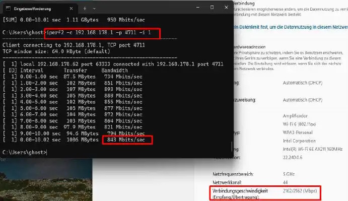 Bei WLAN-Verbindungen kann es sein, dass der von iPerf2 ermittelte Durchsatz deutlich unter dem theoretischen Maximum liegt. Weniger als die Hälfte ist keine Seltenheit. Deine Verbindung schafft also theoretisch 2.000 Mbit/s, aber am Ende kommen nur 700 Mbit/s bei Dir an. Dies kann jedoch auch an der Messmethodik liegen. Denn: iPerf2 verwendet normalerweise nur einen Datenstrom für diesen Test, was das Ergebnis verzerren kann.