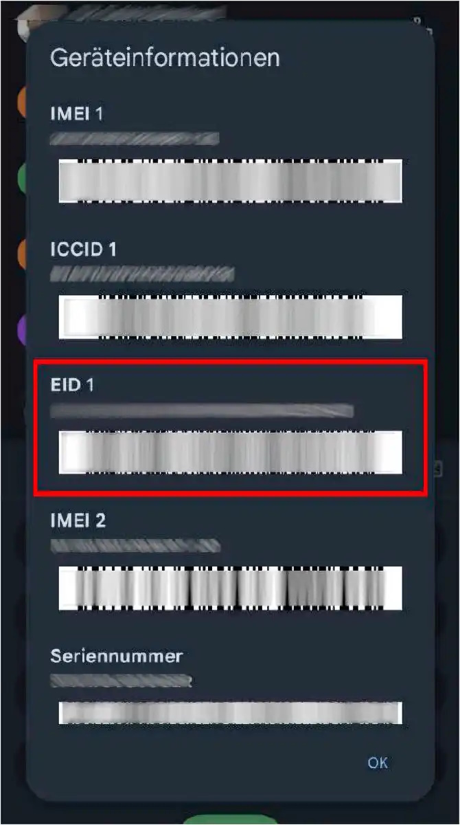 Schneller geht es, wenn Du die Telefon-App öffnest und dort den Code „*#06#“ eingibst. Anschließend werden Dir einige Geräteinformationen gezeigt. Findest du dort den Eintrag „EID“, bedeutet das, dass Dein Handy für eSIM-Profile geeignet ist.