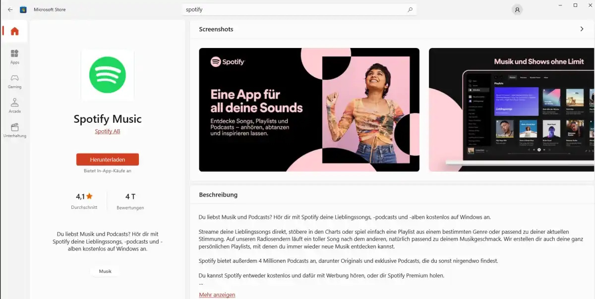 Das Musikstreaming via Web-Player ist zwar einfach, jedoch insgesamt wenig komfortabel. So muss der Browser während des Streamings permanent geöffnet sein. Ansonsten ist es mit dem Musikgenuss schlagartig vorbei. Und wer hat nicht schon einmal versehentlich das falsche Browserfenster geschlossen? Mehr Komfort bietet dagegen das Streaming per App. Inzwischen bieten alle großen Streaming-Dienste dafür eigene Anwendungen an. So kannst Du die Spotify-App etwa kostenlos im Microsoft Store für Deinen Windows-PC oder im Play Store bzw. App Store für Android- bzw. iOS-Smartphones herunterladen. Dabei winken mehr Einstellmöglichkeiten und oft auch eine höhere Audioqualität. Denn Anbieter wie Spotify drosseln die Bitrate beim Abspielen per Web-Player. Das mag bei Podcasts und Hörbüchern weniger wichtig sein. Anders sieht das hingegen bei Musik aus.