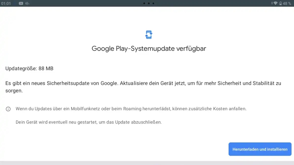 Einstellungen [→ System] → Über das Tablet → Android-Version → Google Play-Systemupdate
