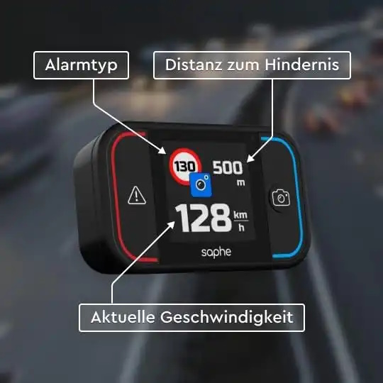Etwa 70 Euro kostet das Drive Pro von Saphe. Anders als bei den anderen bisherigen Gadgets bekommst Du hier sogar ein etwa 1,5 Zoll großes Display geboten, das Dir einige Informationen anzeigt – wie die Distanz zum Blitzer, die aktuelle Geschwindigkeit und die aktuelle Maximalgeschwindigkeit, die erlaubt ist. Dabei warnt Drive Pro nicht nur vor stationären, sondern auch mobilen Blitzern. Unfälle und andere Hindernisse wie liegengebliebene Autos gehören ebenfalls zum Repertoire.