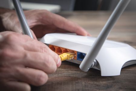 - Verbinde den Router via Kabel anstatt WLAN. Via Notebook oder PC stellst Du eine Direktverbindung zum Router her, was auf jeden Fall den Zugriff auf den Router freischalten sollte. Handelt es sich um einen PC, muss das Kabel eventuell lang genug sein – oder Du trägst das Gerät für einen Augenblick an die richtige Stelle. Durch die Kabelverbindung werden eventuelle WLAN-Probleme ausgeschlossen.