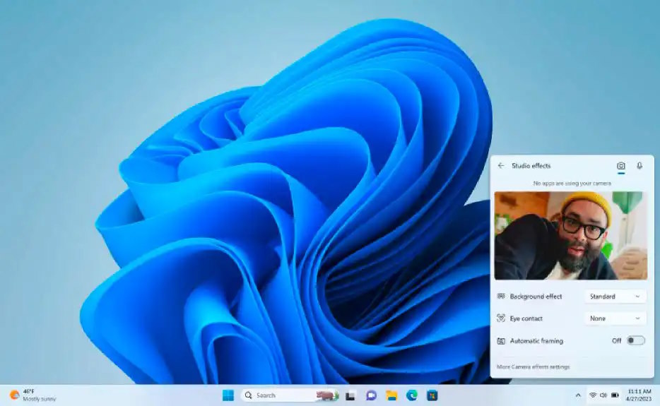 Eine Anwendungsmöglichkeit sind die Windows Studio Effects bei Videokonferenzen. Bei aktivierter Laptop-Kamera (entweder über die Schnelleinstellungen oder über Windows-Einstellungen) hält die Künstliche Intelligenz das Bild immer auf Dich zentriert, sodass stetiger Augenkontakt besteht, selbst wenn Du gerade nicht in die Kamera blickst. Zudem filtert die KI störende Nebengeräusche oder lässt den Hintergrund verschwommen wirken.