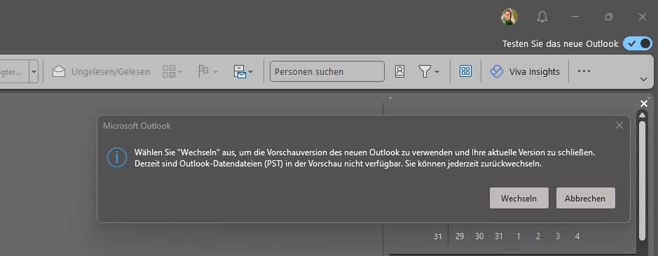An einigen Stellen hakt es noch, wenngleich die Liste der unterstützten Funktionen stetig wächst. Beispielsweise kann das neue Outlook noch nicht mit PST-Dateien umgehen, was Backups schwierig macht. Auch der Dateiexport oder -import ist noch nicht möglich. Spielt dies für Dich eine Rolle, solltest Du mit einem Wechsel entsprechend warten. Eine klare Roadmap seitens Microsofts liegt noch nicht vor, wann somit beispielsweise PST-Dateien unterstützt werden, steht in den Sternen. Ebenso ist denkbar, dass einige klassische Funktionen schlicht gestrichen werden, da sie nicht mehr relevant sind – aber auch das ist reine Spekulation.