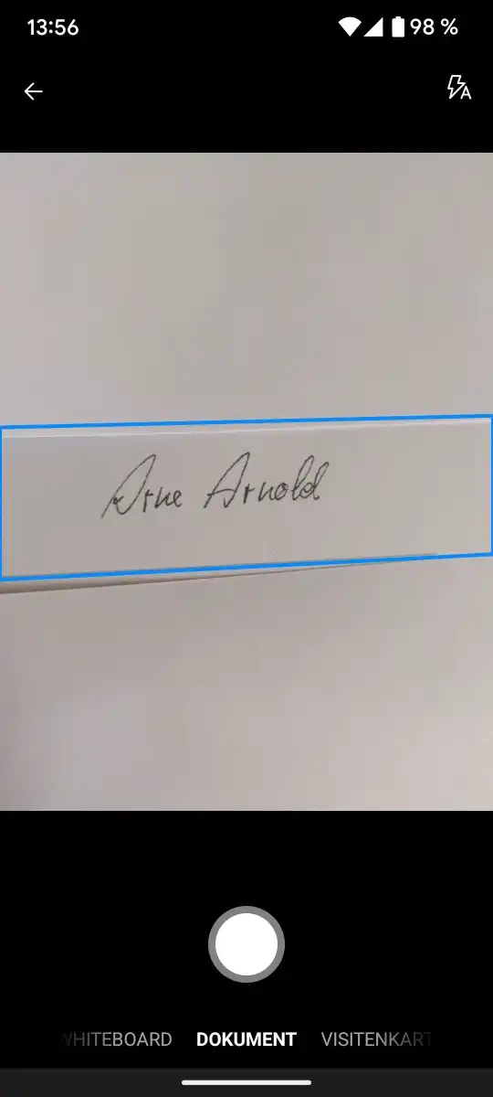 Fotografiere die Unterschrift auf Papier und nutze dazu am besten eine Scanner-App, wie sie von Microsoft über OneDrive angeboten wird. Das ist auch mit Smartphone möglich, nutze dafür einfach die integrierte Kamera. Vor dem Fotografieren kannst Du „Dokument“ auswählen, sodass dunkle Schatten auf dem Papier automatisch ausgebessert werden. Überflüssige Ränder schneidest Du mit der Zuschneiden-Funktion ab, danach speicherst Du die Datei. Tipp: Bildbearbeitungsprogramme erlauben die Anpassung der Aufnahme über „Kontrast“ und „Helligkeit“.