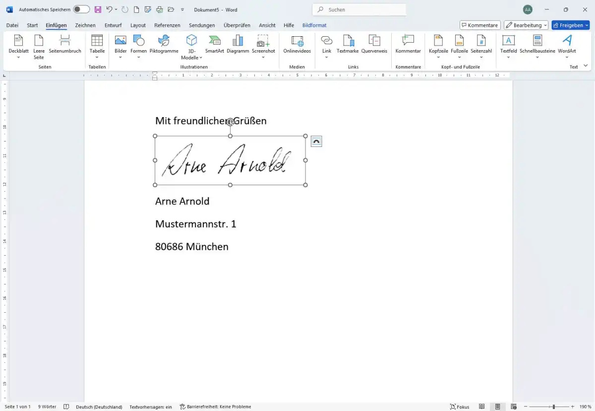 Um eine elektronische Unterschrift einzufügen, gehst Du mit den folgenden Schritten vor: