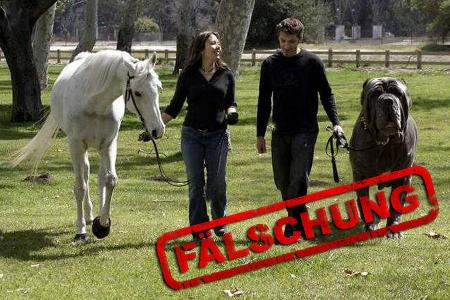 Hoax! Er ist fast so groß wie ein Pferd, aber er ist ein Hund. Das Foto zeigt angeblich den im Guinness-Buch eingetragene Riesenhund Hercules. Allerdings ist die Englische Dogge auf dem Bild nicht identisch mit jenem Hercules. Das Bild selbst ist ein Hoax. Hier war jemand mit einem Bildbearbeitungsprogramm am Werke. Woher das Originalfoto stammt und was es genau zeigte (vermutlich zwei am Halfter geführte Pferde), ist unbekannt.