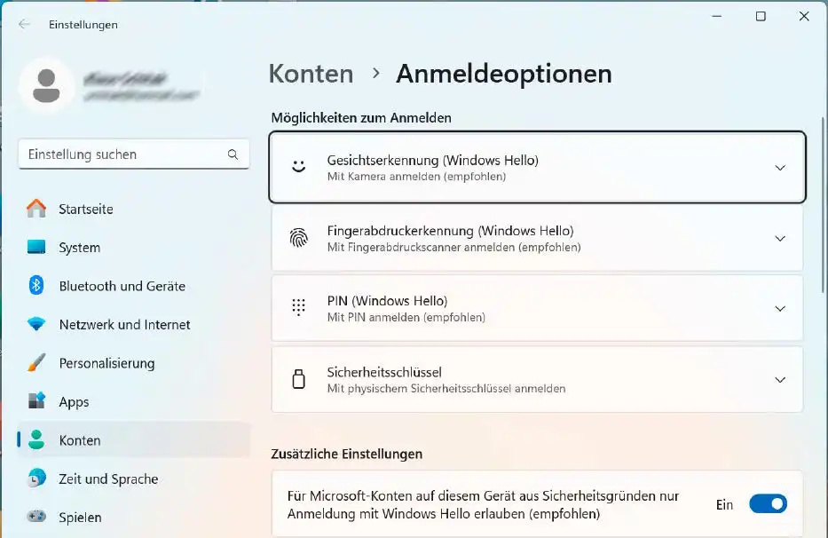 Mit Windows Hello ohne Passwort anmelden