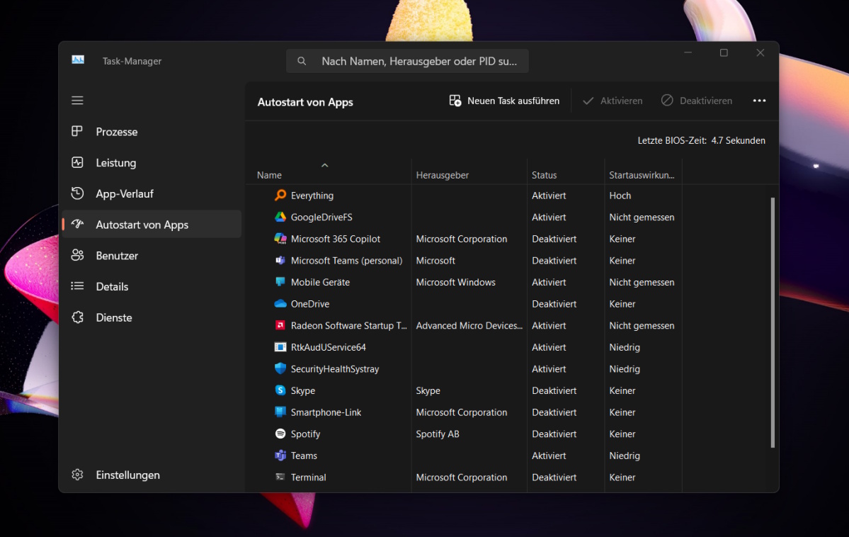 Zum Deaktivieren klickst Du mit der rechten Maustaste einfach auf die entsprechende App und wählst Deaktivieren. Nachdem Du alle nicht benötigten Apps deaktiviert hast, kannst Du direkt Deinen Rechner neu starten und sehen, wie sich Deine Änderungen auf den Systemstart auswirken.