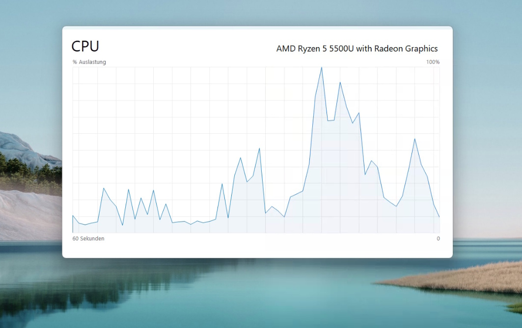 Dazu wählst Du die Registerkarte Leistung und anschließend die Komponenten, die Du gerne überwachen möchtest – also etwa CPU, Datenträger, Arbeitsspeicher und so weiter. Auf dem großen Echtzeitdiagramm kannst Du nun mit der rechten Maustaste klicken und die Diagrammübersichtsansicht auswählen. Hierbei handelt es sich um ein vereinfachtes Menü ohne zusätzliche Menüpunkte. Um zur gewohnten Ansicht zurückzukehren, reicht ein einfacher Doppelklick.