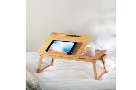 Tablett und Gestell Bambus; platzsparend zusammenklappbar;