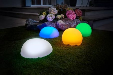 Für außen; IP44; Lichtfarbe: weiß, bernsteinfarben oder RGB; Leuchtdauer: 6–8 Std.;