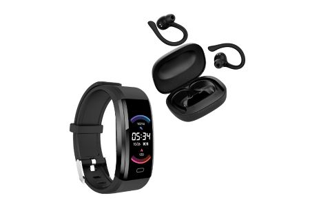 Bluetooth® 5.4; Sport-Ohrhöhrer JYZ 501012, ca. 15 Std. Wiedergabezeit; sicherer Sitz; Sprachassistent; inkl. Ladeetui; Fitness-Tracker 351423, Herzfrequenz- und Schlaf-Tracking, Blutdruckmessung