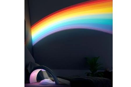 Projiziert farbenfrohe Regenbögen an die Wand