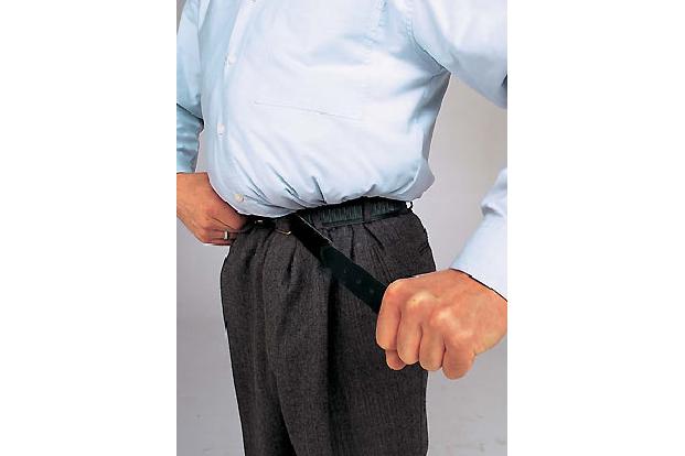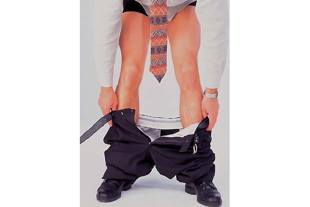 Die Krawatte endet an der Gürtelschnalle und sollte niemals