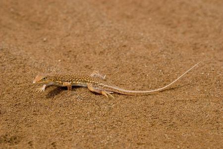Die Wüsteneidechse flitzt gut getarnt über russischen und koreanischen Boden. Weil sie ziemlich groß werden (bis zu 20 Zentimeter lang) wird man trotz ihrer Schnelligkeit aufschrecken, wenn eins dieser getarnten Reptilien an einem vorbeihuscht.