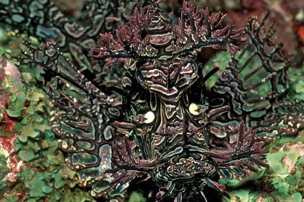 Dieser Algen-Drachenkopf wird auch "Meersau" genannt! Allerdings schwer zu sehen! Er schwimmt auch nicht und macht ungern hektische Bewegungen. Drachenköpfe sind nämlich träge Bodenfische.