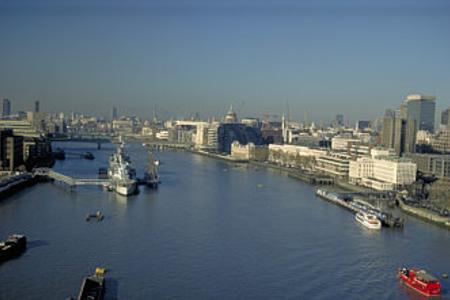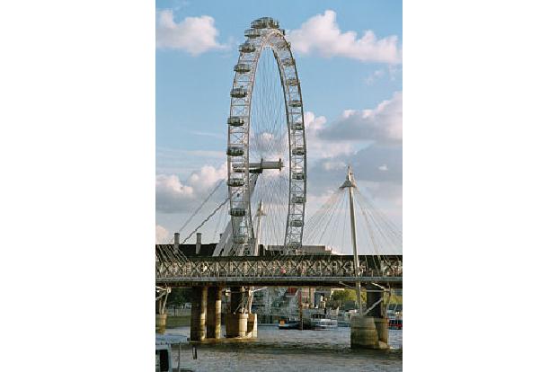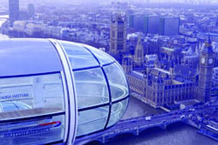 Auf der rund 30-minütigen Fahrt in einer der verglasten Gondeln des "London Eye" oder "Millennium Wheel" kann man London von oben bewundern. Bei schönem Wetter kann man bis zu 40 Kilometer weit sehen.