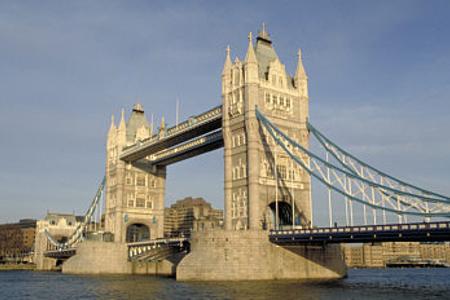 Eines der Wahrzeichen Londons ist die Tower Bridge. Die östliche Klappbrücke im Stil der viktorianischen Gotik wurde 1894 eröffnet.