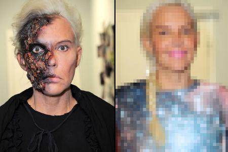 Wow - Die sieht aber schauerlich aus! Das demolierte Gesicht geht aber nicht auf eine schwere Verletzung zurück, sondern auf die geübten Hände einer Make-up-Artistin. Doch wer promotet für die neue Show des Gruselkabinetts "Berlin Dungeon"?