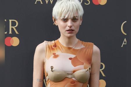 Emma Corrin (26) hat einen sehr skurrilen Auftritt hingelegt, als sie bei den Olivier Awards in der Royal Albert Hall in London über den roten Teppich schritt. Die Schauspielerin, die bei der britischen Theaterpreisverleihung in der Kategorie "Beste Hauptdarstellerin" nominiert war, trug über ihrem Kleid einen BH aus Luftballons.