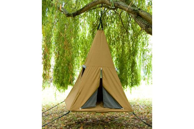 Mit diesem Zelt bekommt man garantiert keine nassen Füße mehr. Das "Treepee-Zelt" kostet rund 600 Dollar und kann ein Gewicht von 150 kg tragen.
