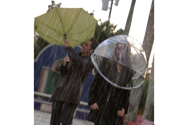 Will man trotz des nervenden Wolkenbruchs kräftig abhotten, bietet sich der "Nubrella" an. Man behält die Hände frei und kann sie in nach Belieben in die Luft schmeißen.