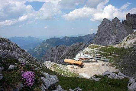 Karwendel Bergwelt Fernrohr, Österreich: Den perfekten Blick über die Bergwelt des Karwendel hat man nicht mit dem Fernrohr, sondern im "Fernrohr", der Aussichtsplattform der Bergstation der Karwendelbahn.