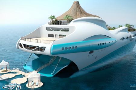Hier schwimmt eine tropische Vulkaninsel! Die neue Superjacht „Tropical Island Paradise“ wurde von britischen Bootsbau-Designern entworfen.
