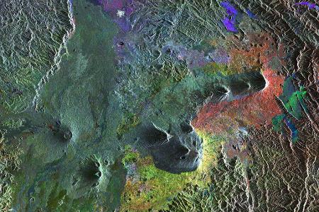 Die Großen Seen bestehen aus Lake Victoria, Lake Tanganyika, Lake Malawi, Lake Turkana, Lake Albert, Lake Kivu und Lake Edward. Zusammen ergibt es eine wichigte Region in Westafrika, von der immerhin ein Teil des trockenen Kontinents profitieren kann. Auf diesem Radarbild ist gut zu erkennen, wie drei der Seen im westlichen Teil des Great Valley angeordnet sind. Oben der Lake Edward, in der Mitte der Lake Kivu und ganz unten der Lake Tanganyika.
