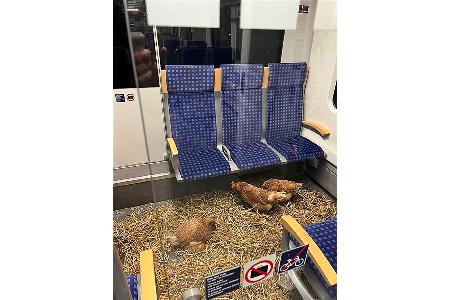 Im Erste-Klasse-Abteil einer S-Bahn sind in Köln drei Hühner ausgesetzt worden. Die Tiere saßen in der S6 von Essen nach Köln auf einer dicken Schicht Stroh, wie ein Sprecher der Deutschen Bahn sagte. Erst am Endbahnhof Köln-Worringen bemerkte der Lokführer demnach die ungewöhnlichen Fahrgäste.