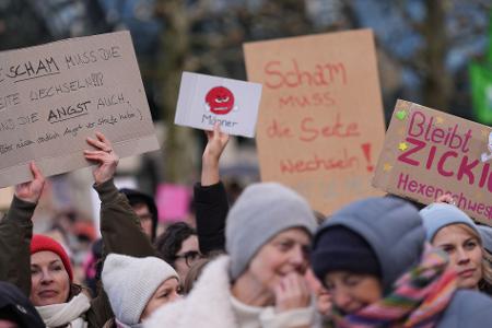 © Marcus Brandt/dpa "Es reicht! Die Scham muss die Seite wechseln": Mit dieser Forderung sind in der Hamburger Innenstadt Tausende auf die Straße gegangen.