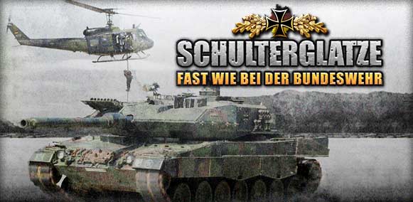 Neue Rekruten sucht das Browserspiel. Bei Schulterglatze könnt Ihr vom einfachen Soldaten zum 4-Sterne-General in der Bundeswehr aufsteigen – vorausgesetzt, Ihr seid gut genug im Arschkriechen, Täuschen und Verpissen oder beim Kameradenverprügeln in der Mannschaftsdusche.