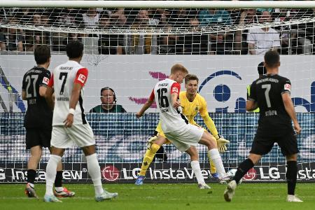 Ekitike verpasste auf der Gegenseite das 2:0 (63.), abgesehen von dieser Ausnahme wurden die nun seltsam passiven Frankfurter jetzt aber förmlich an die Wand gespielt. Zu Entlastungsmomenten kam die SGE kaum noch - einer der wenigen aber führte zur Entscheidung.