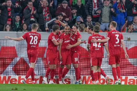 Mitnehmen in den Saisonendspurt kann der Nachfolger von Christian Streich nach zuletzt drei 1:0-Siegen unverhoffte Offensivpower. Kiliann Sildillia per Fallrückzieher (15.) und Vincenzo Grifo mit einem direkt verwandelten Freistoß (33.) trafen spektakulär für die Freiburger, Grifo schnürte in der 57. Minute seinen Doppelpack. Auch Ritsu Doan (76./90.+2) traf vor 34.700 Zuschauern im ausverkauften Stadion doppelt.