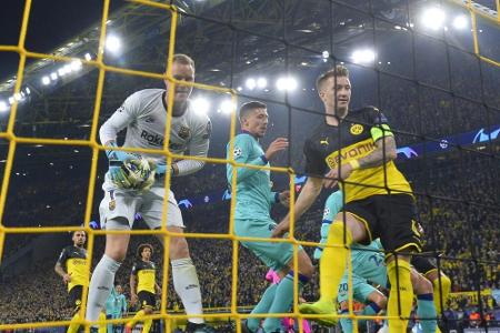 "Ehrlich gesagt", fühle er sich "scheiße", sagte der Kapitän des BVB bei Sky. Der Strafstoß, mit dem Reus den großen Gegner hätte bezwingen können, war "schlecht geschossen, da muss ich ran, das muss ich üben", so Reus. So hatte Marc-Andre ter Stegen zwischen den Pfosten von Barca keine Probleme, auch wenn er nicht regelkonform mit einem Bein beim Schuss die Torlinie berührte.
