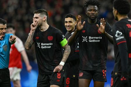 Sportchef Simon Rolfes sprach von einer "glasklaren" Fehlentscheidung, Kapitän Robert Andrich sah nur "sehr wenig Kontakt": Der Frust bei Bayer Leverkusen saß nach dem umstrittenen Elfmeterpfiff für den FC Arsenal und dem daraus resultierenden 1:1 durch Rückkehrer Kai Havertz tief. "Natürlich habe ich mich aufgeregt. Eine Berührung reicht ja nicht einfach für den Elfmeter", sagte Rolfes nach dem am Ende bitteren Remis im Achtelfinal-Hinspiel der Champions League.
