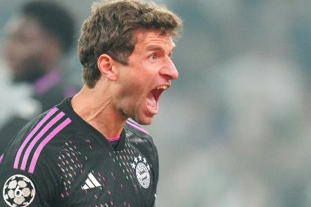 Dabei musste Müller länger auf seinen Einsatz warten als erhofft. Weil Jamal Musiala (67.) zunächst ausglich, beorderte Trainer Thomas Tuchel das schon bereitstehende Trio Müller, Tel und Eric Maxim Choupo-Moting noch einmal mit einem Lächeln zurück. "Das war witzig", sagte Müller, "der Linienrichter hat zum Glück die Situation verpasst, uns einzuwechseln. Wir kamen ein bisschen später rein, aber mit Gebrüll!"