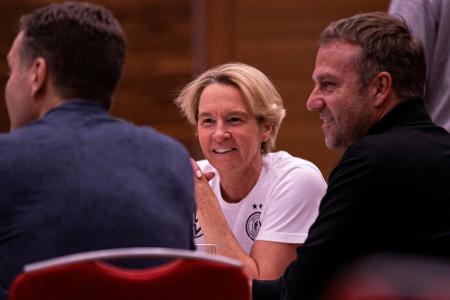 Bundestrainerin Martina Voss-Tecklenburg nutzte das erste Treffen mit ihrem Kollegen Flick zum Plaudern, aber auch für Fachgespräche: "Es ist einfach ein schönes Zeichen, dass beide sich die Zeit genommen haben und großes Interesse zeigen."