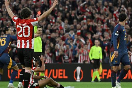 Der spanische Europameister Nico Williams (45.+3, 82.) und Yuri Berchiche (68.) sorgten für den Sieg der Basken, die weiter vom Finale im eigenen Stadion am 24. Mai träumen dürfen und im Viertelfinale nun auf Fenerbahçe Istanbul oder die Glasgow Rangers treffen. Leandro Paredes (90.+3) erzielte per Foulelfmeter den Treffer für die Roma. Für Hummels setzte es dagegen einen neuen Tiefpunkt seines Italien-Kapitels.