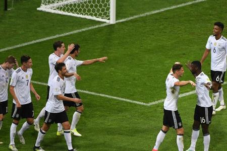 Der glänzende Auftritt der "jungen Wilden" begeisterte auch die etablierten Stars daheim. "Fiiiiiiinnaaaaalleeeeee! 4:1! Super gemacht", schrieb Thomas Müller bei Twitter. Mats Hummels schloss sich mit Applaus an, Sami Khedira schrieb: "Top-Leistung gegen einen starken Gegner!" Es geht bei der Mini-WM um den Titel - damit hatte angesichts des Kaders niemand gerechnet.