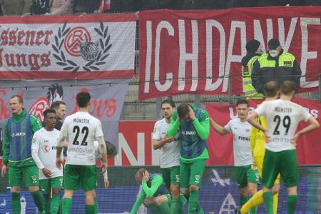 Tags zuvor war das Topspiel der Regionalliga West nach dem folgenschweren Böllerwurf, bei dem die Münsteraner Verletzungen erlitten, beim Stand von 1:1 in der 74. Minute abgebrochen worden.