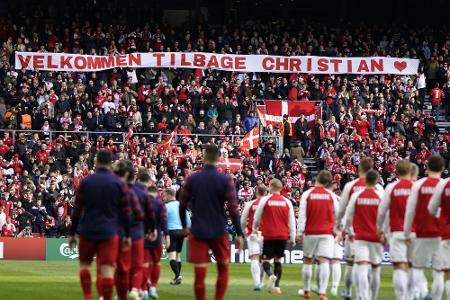 "Willkommen zu Hause, Christian", stand neben einem rotem Herzen auf weißem Grund auf einem Transparent. Drei Tage zuvor war Eriksen gegen die Niederlande in Amsterdam eingewechselt worden und hatte bei der dänischen 2:4-Niederlage das schönste Tor des Abends erzielt. Diesmal trafen für die Dänen neben dem Kapitän auch Joakim Maehle (Atalanta Bergamo/15.) und der Frankfurter Bundesliga-Profi Jesper Lindström (53.).